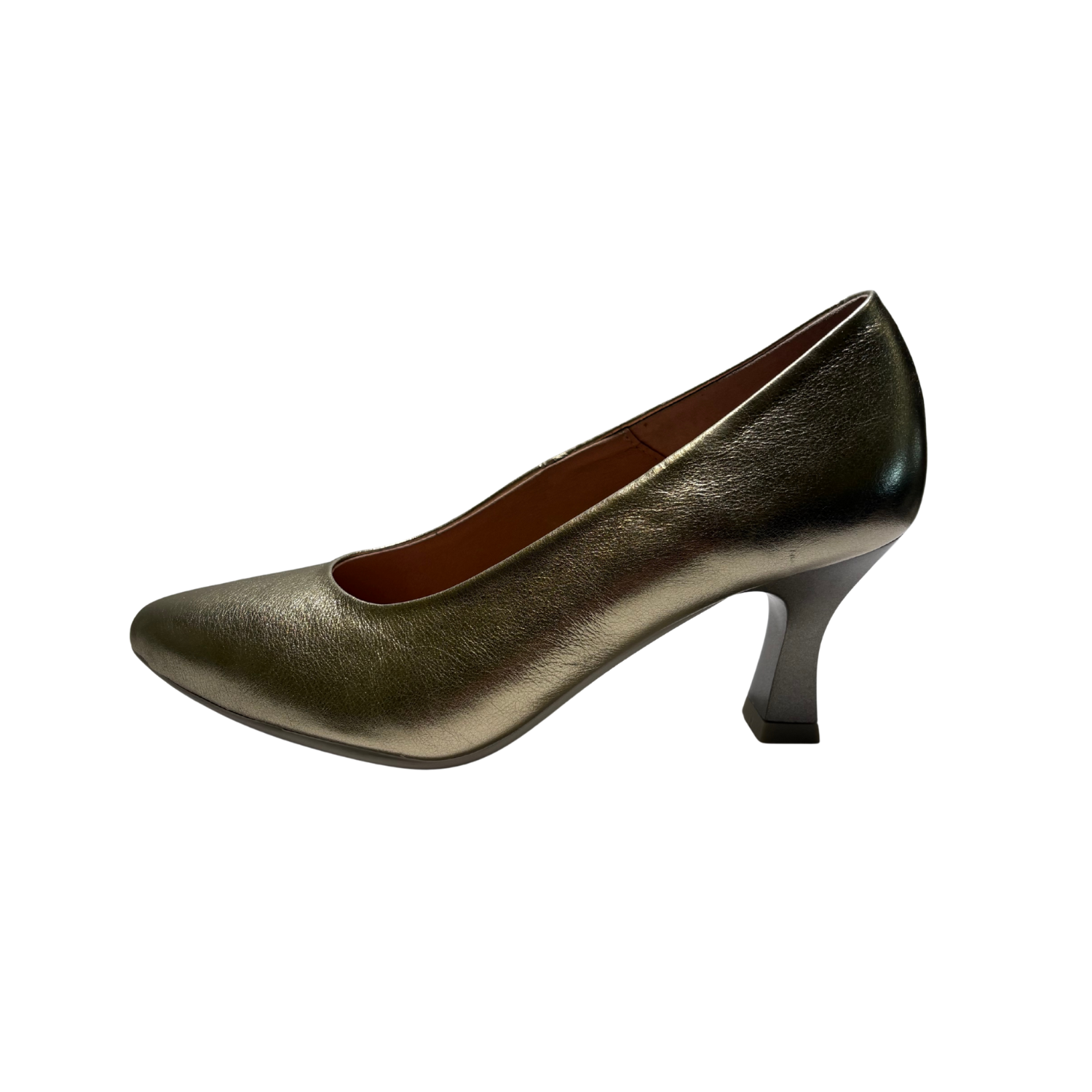 Experience the luxury of smooth shimmering leather with these stunning court shoes. Featuring a pointed toe, mid height tapered heel, and a soft touch cushioned insole, these shoes provide both style and comfort. The gripped outsole offers stability and added confidence with every step.