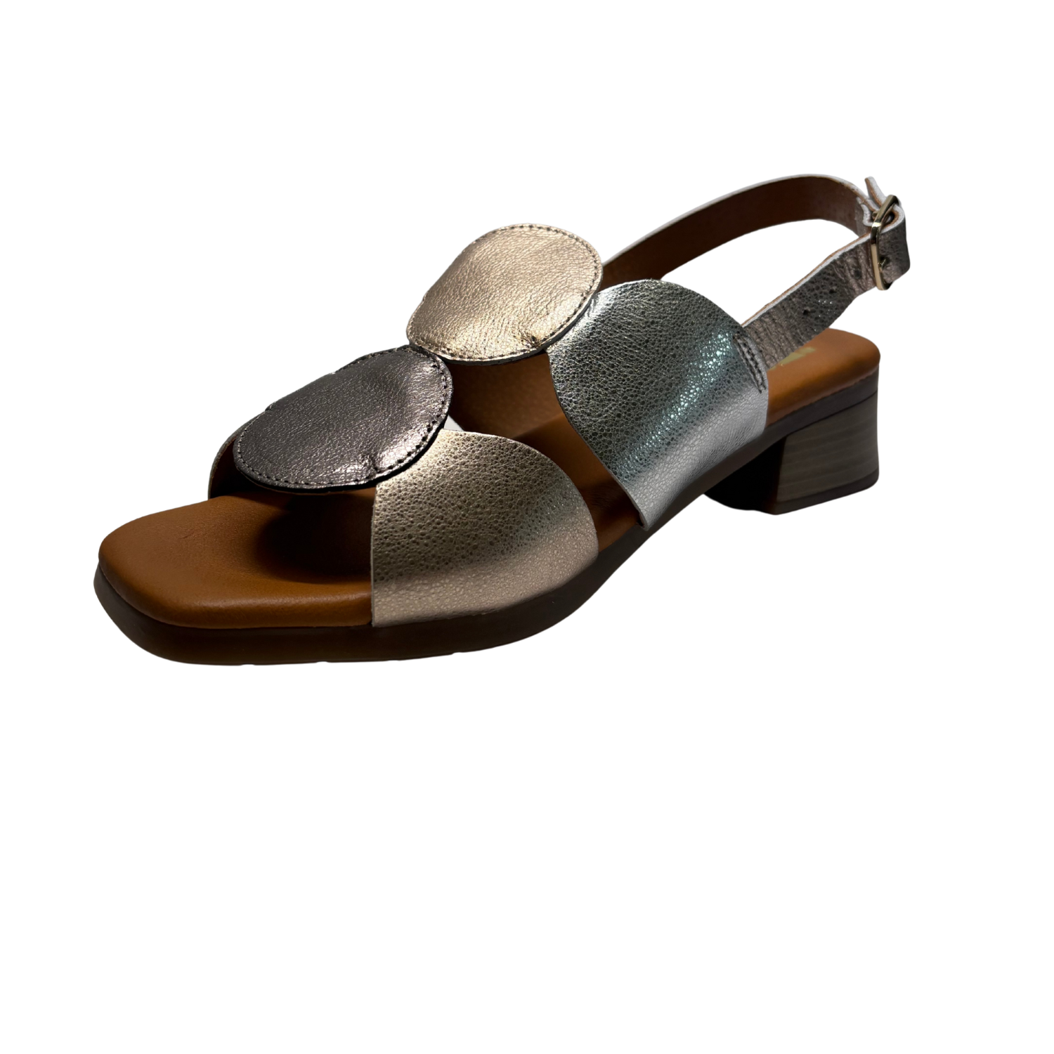 BERTA by NU BY NEO is a beautiful Spanish heel, boasting a unique metallic leather upper with a geometric and peep toe design. Crafted with a generously cushioned, memory-foam leather insole and a comfortable and lightweight block heel, BERTA is the perfect choice for both special occasions and everyday sophistication. Super flattering and like walking on clouds!