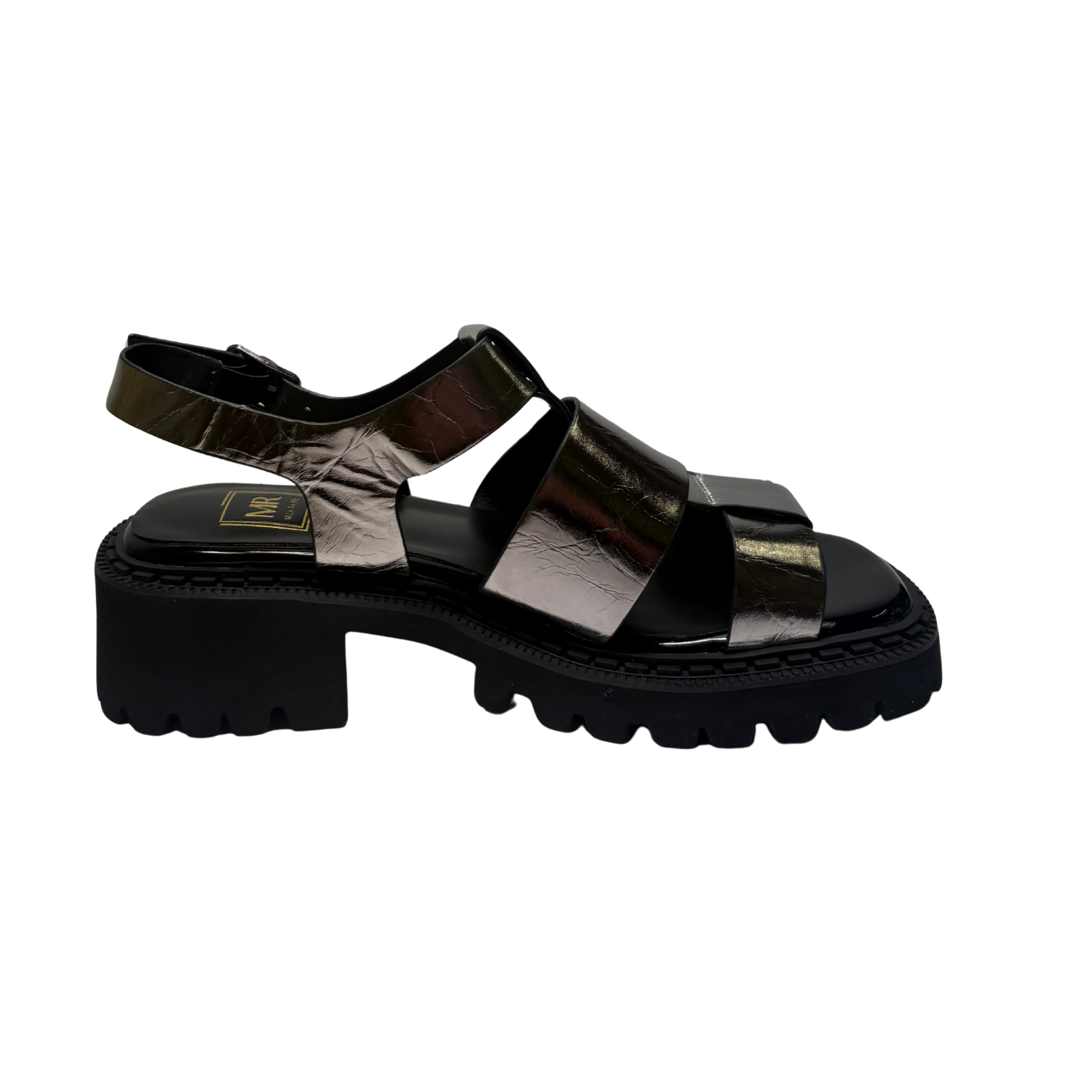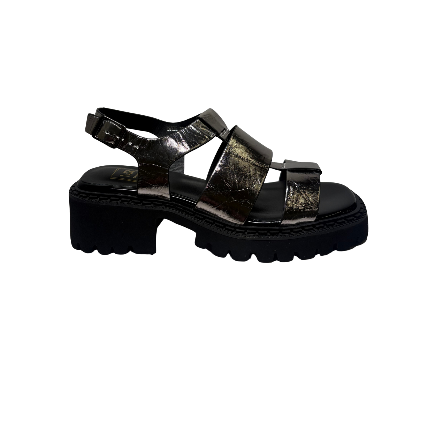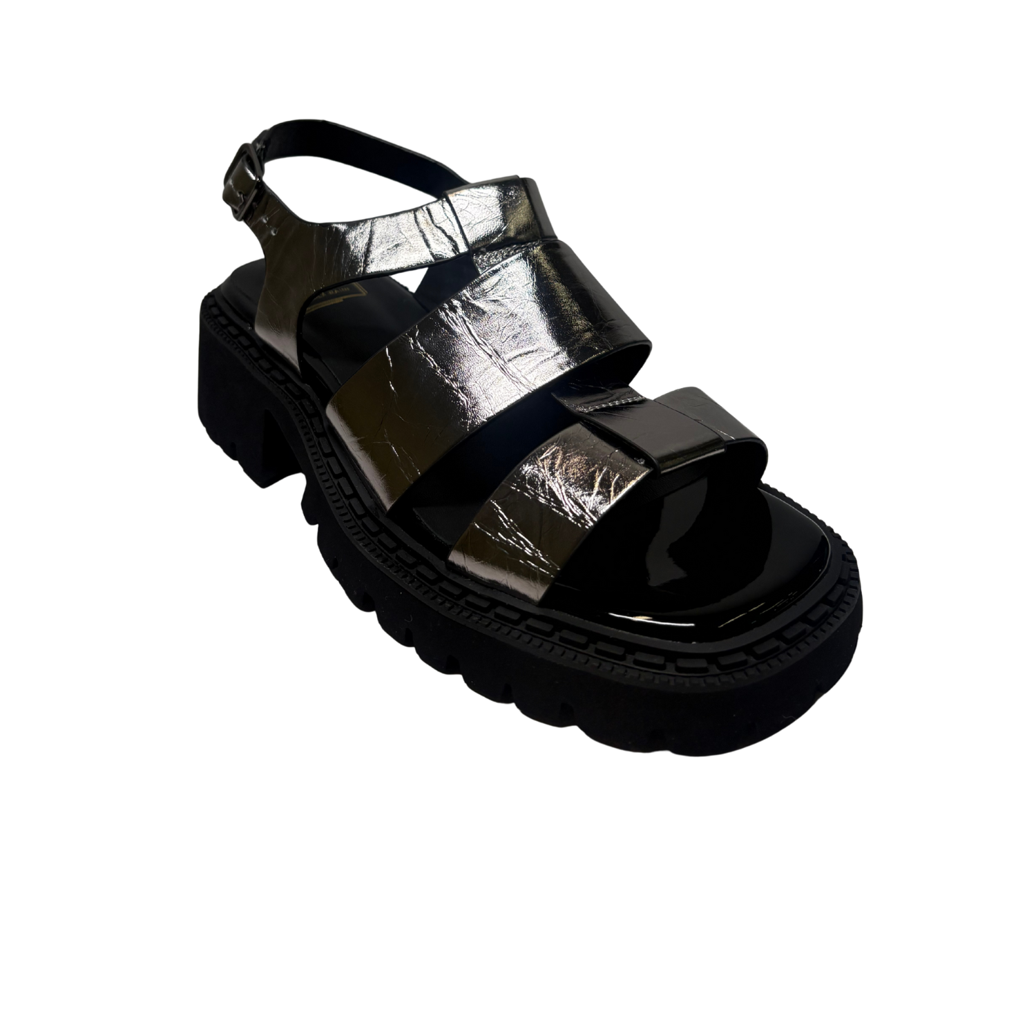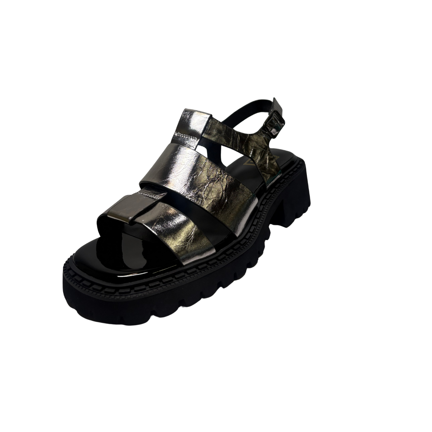 Beautiful Chunky Sandals from Mila Raine ,add a touch of class to your summer wardrobe with this on trend, chunky sandal from MILA RAINE. The upper is a silver crinkled leather with an adjustable buckle strap around the heel. The cushioned footbed will provide comfort, this all sits on a chunky rubber sole