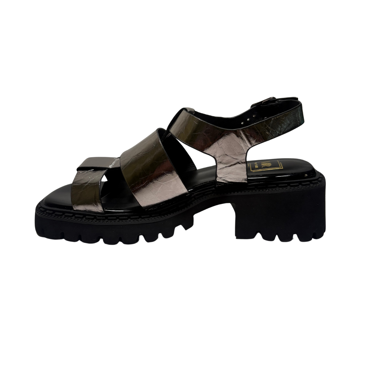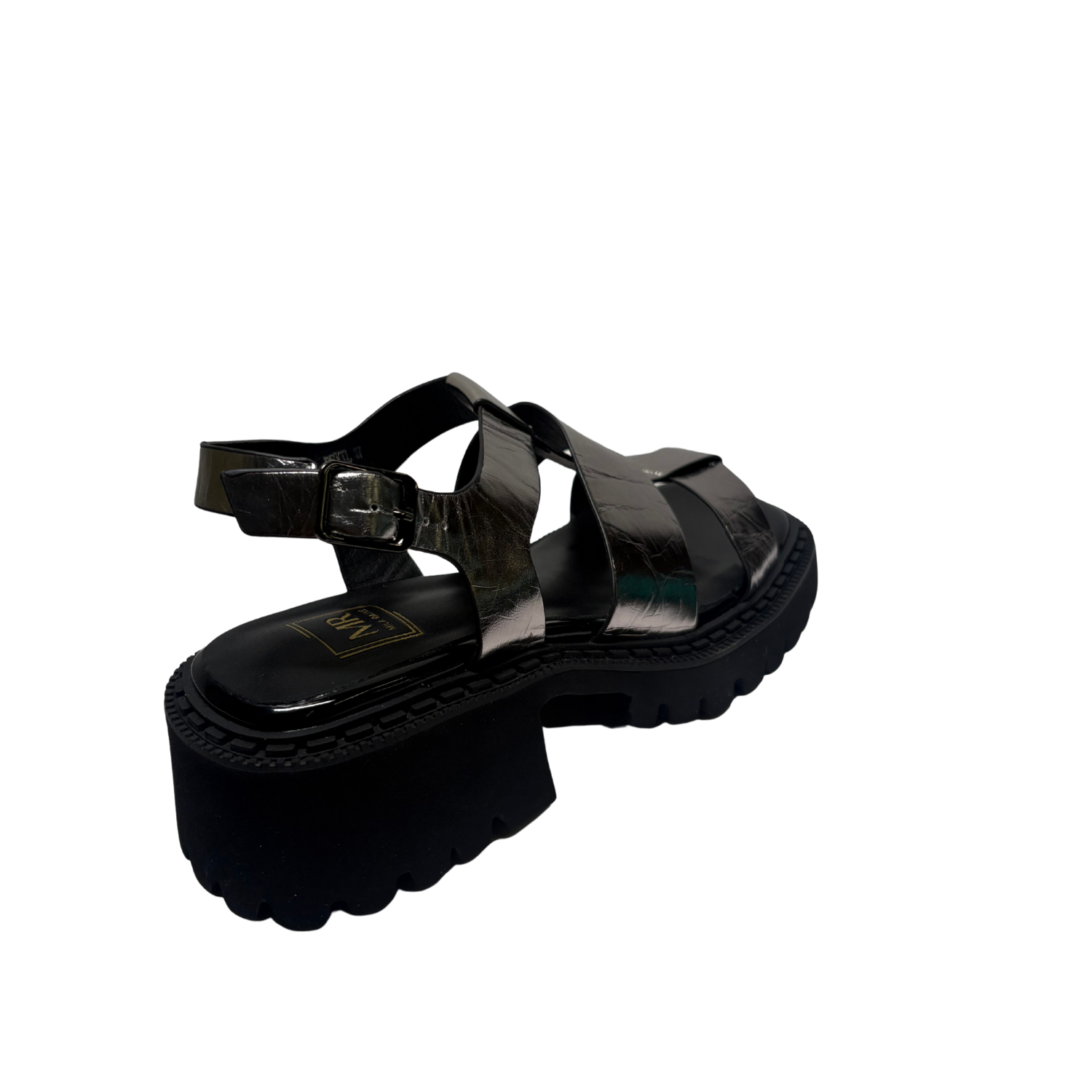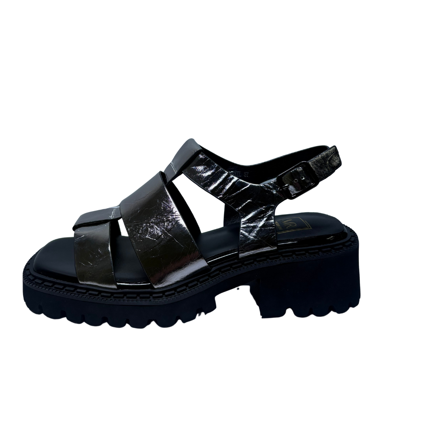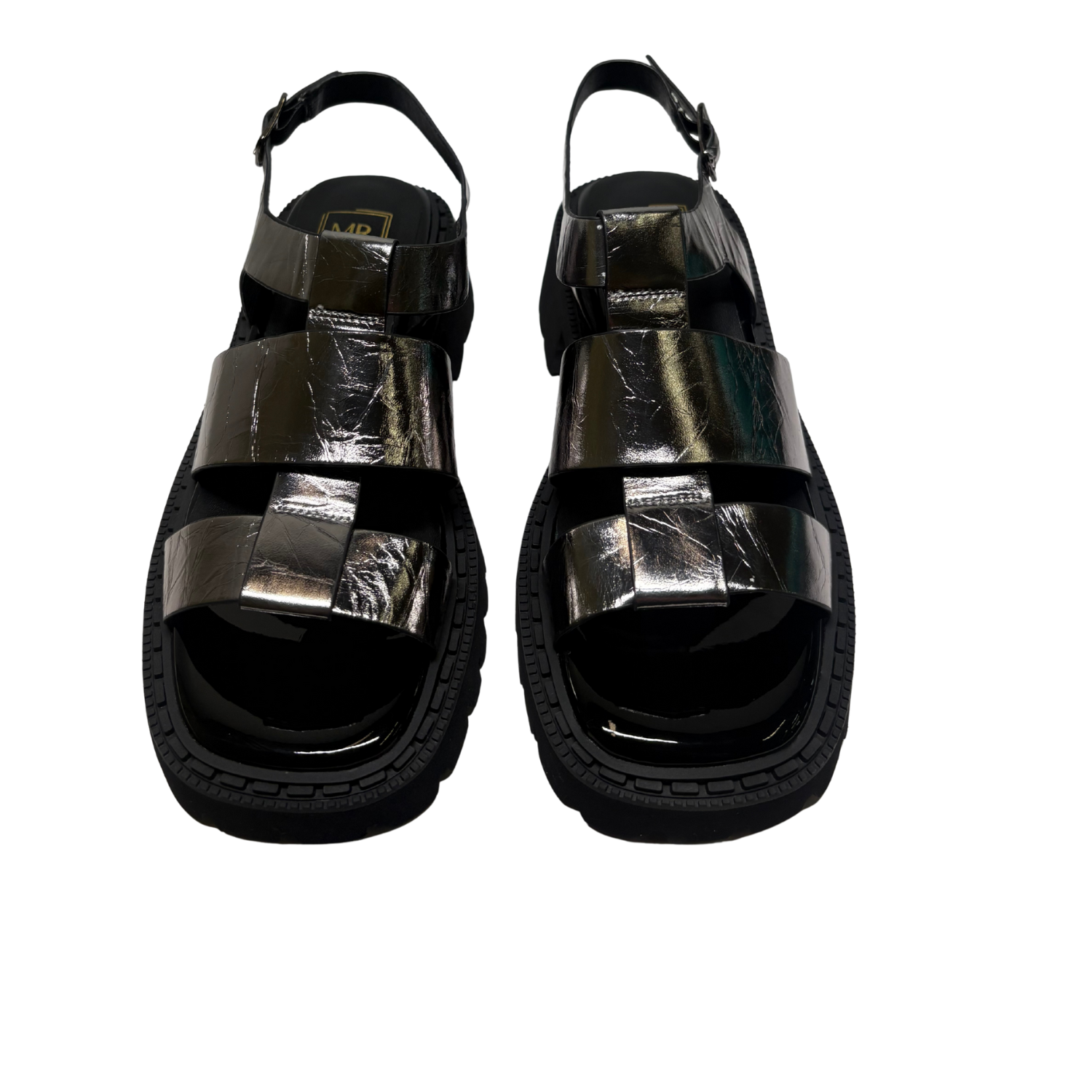 Beautiful Chunky Sandals from Mila Raine ,add a touch of class to your summer wardrobe with this on trend, chunky sandal from MILA RAINE. The upper is a silver crinkled leather with an adjustable buckle strap around the heel. The cushioned footbed will provide comfort, this all sits on a chunky rubber sole