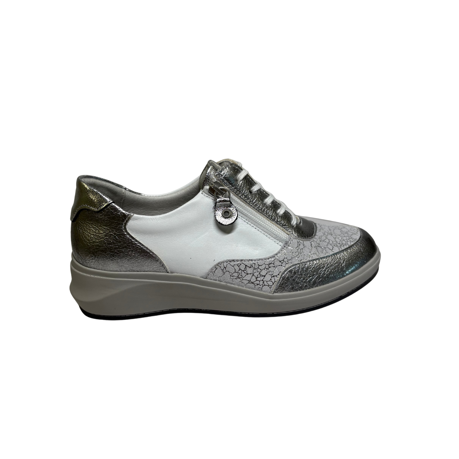 Electra Silver Combo by Suave is a quality made leather shoe with comfort and styling to match. The footbed is fully removable if required to insert an orthotic inner. With the flexible rubber sole your feet will love you for it.