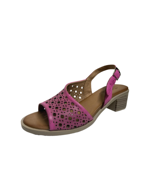 Step into style with the Emina Sandal. Featuring a chic block heel, adjustable ankle strap, and intricate laser-cut leather upper detailing, these sandals offer both comfort and elegance.