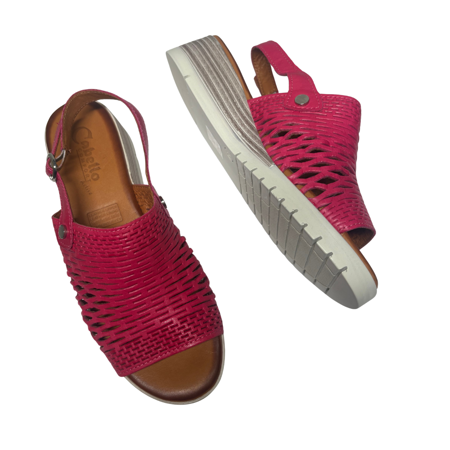Casual comfort is embodied in Cabello's Enigma wedge sandal.