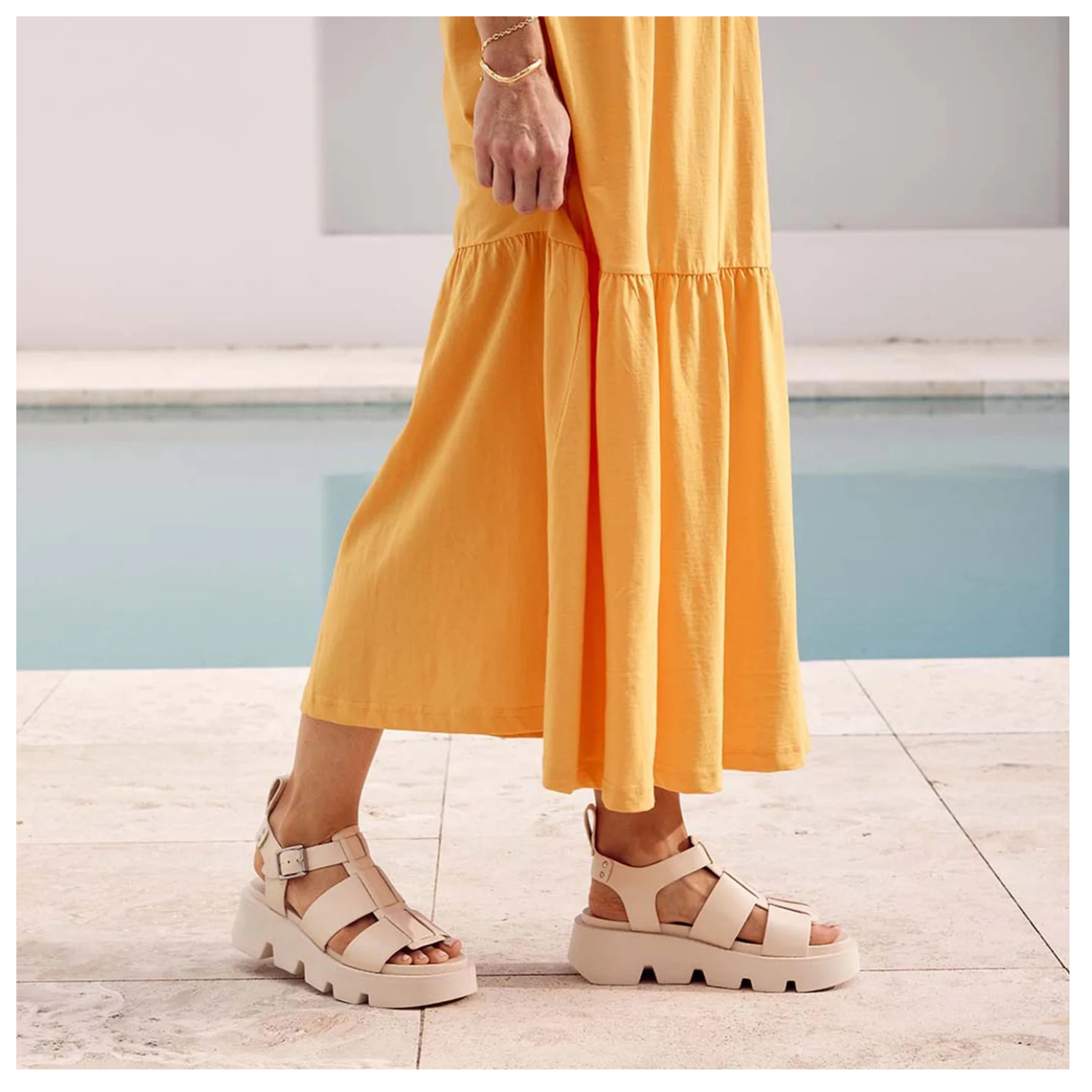 Step out in style with our KAILAN sandals. Crafted with a premium leather upper, leather wrapped footbed and 52mm platform wedge, these sandals offer sophisticated style and extended wearability. The ankle strap adds an elegant touch, while the fisherman's upper and two metal studs on the large pull tab complete the look for a truly exclusive finish.