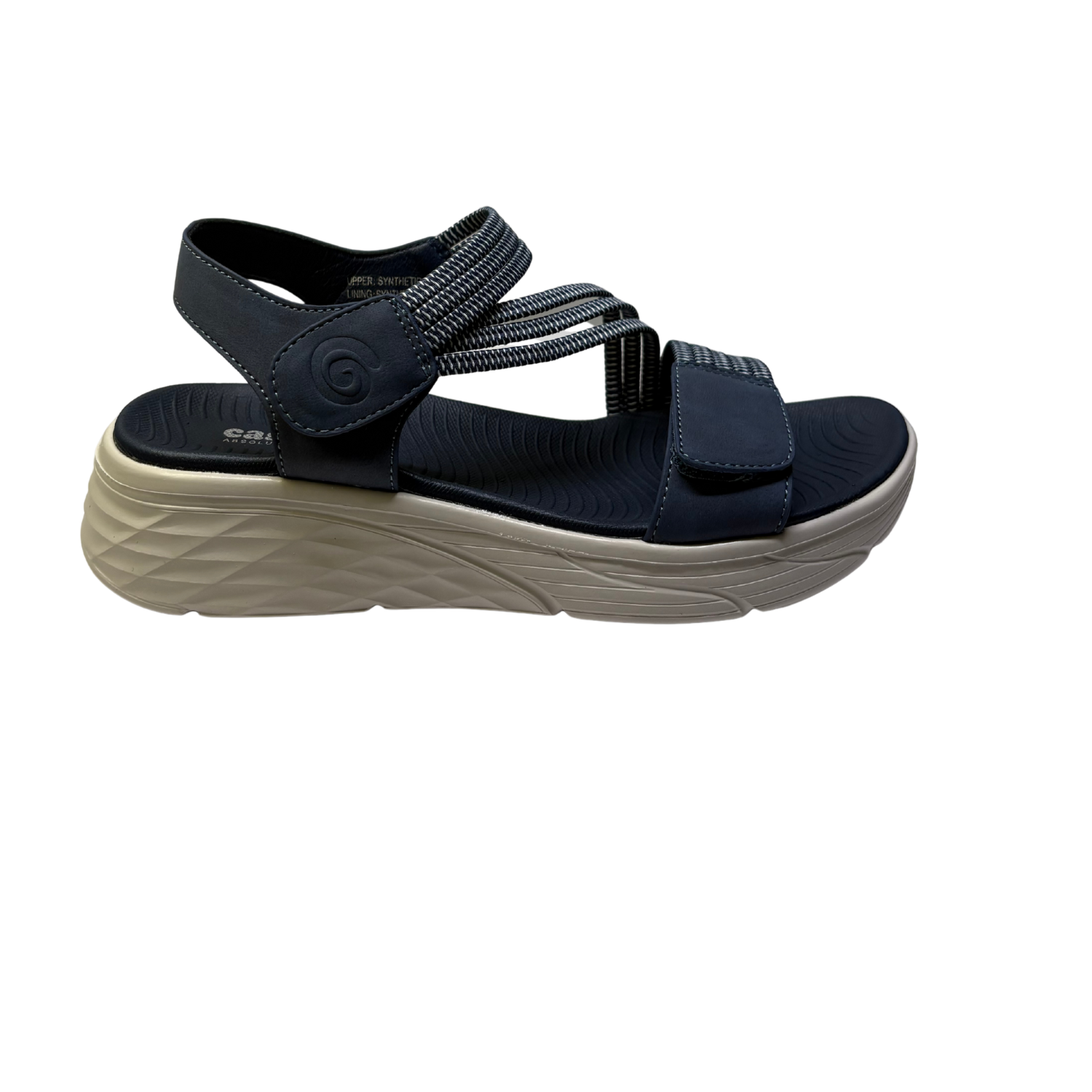 Sporty and supportive, the Menova sandal features a cushioned platform sole, elastic straps, and adjustable closures for all-day comfort on the go.