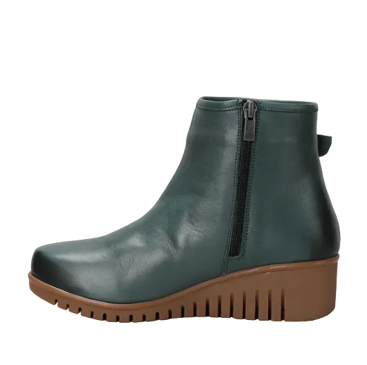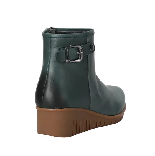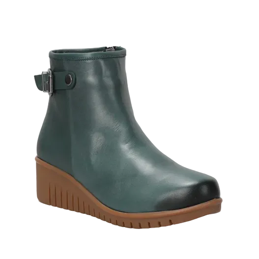 The Meridan boot offers modern polish with its smooth leather finish, decorative side buckle, and inside zipper. A comfy wedge sole makes it perfect for everyday wear.
