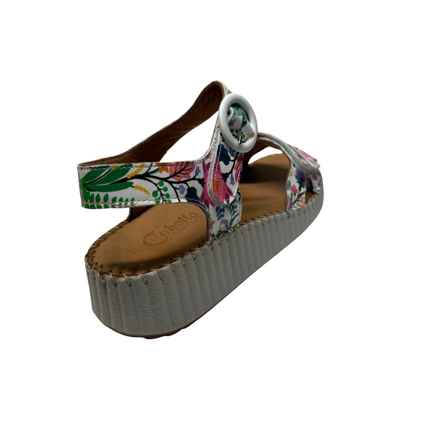 Step into style and comfort with our floral wedge sandal. Featuring soft Velcro straps for a secure, adjustable fit, this sandal combines convenience with charm. The vibrant floral print adds a fresh, feminine touch, while the round statement buckle brings a pop of personality. A subtle wedge heel gives you a flattering lift, and the ultra-cushioned footbed ensures all-day comfort.