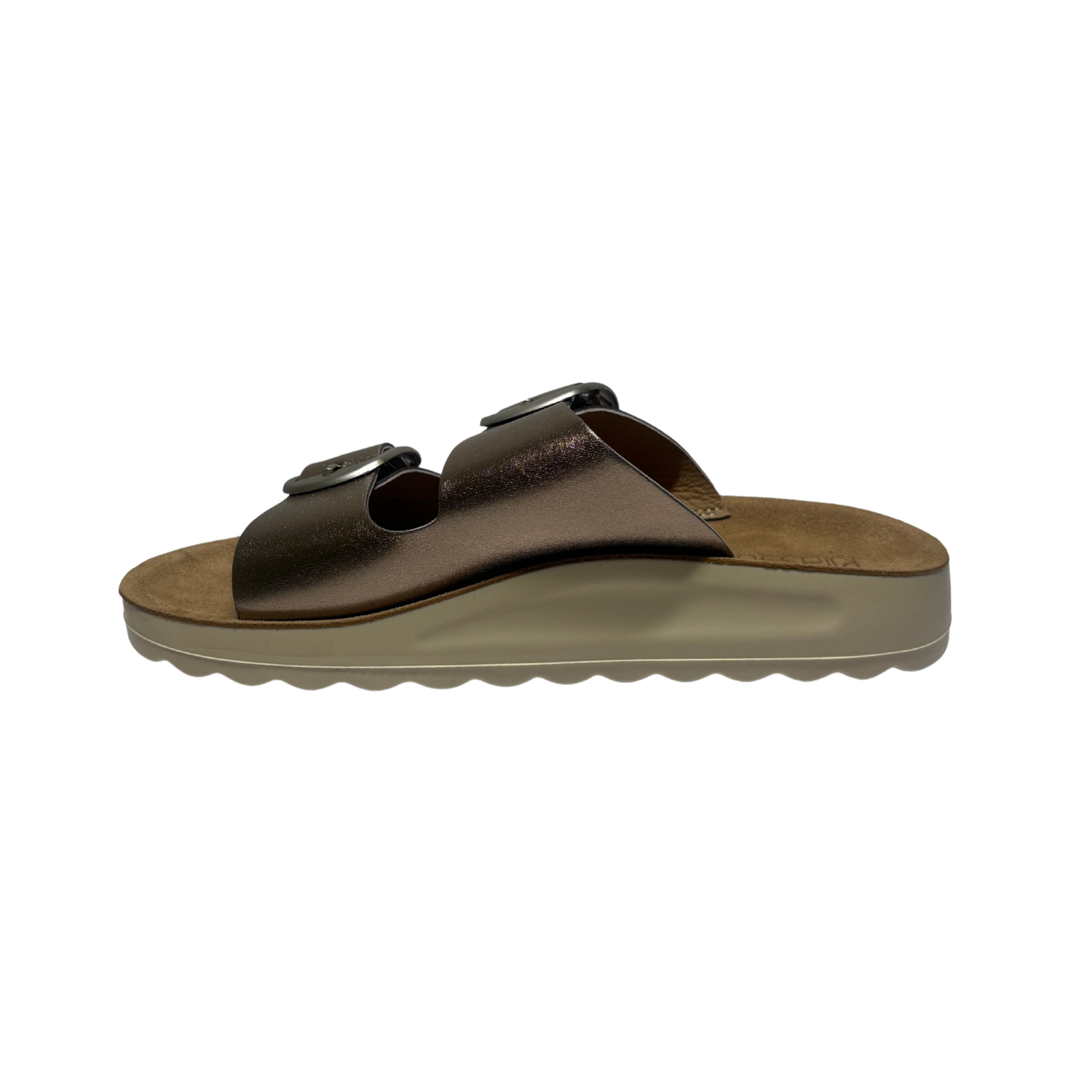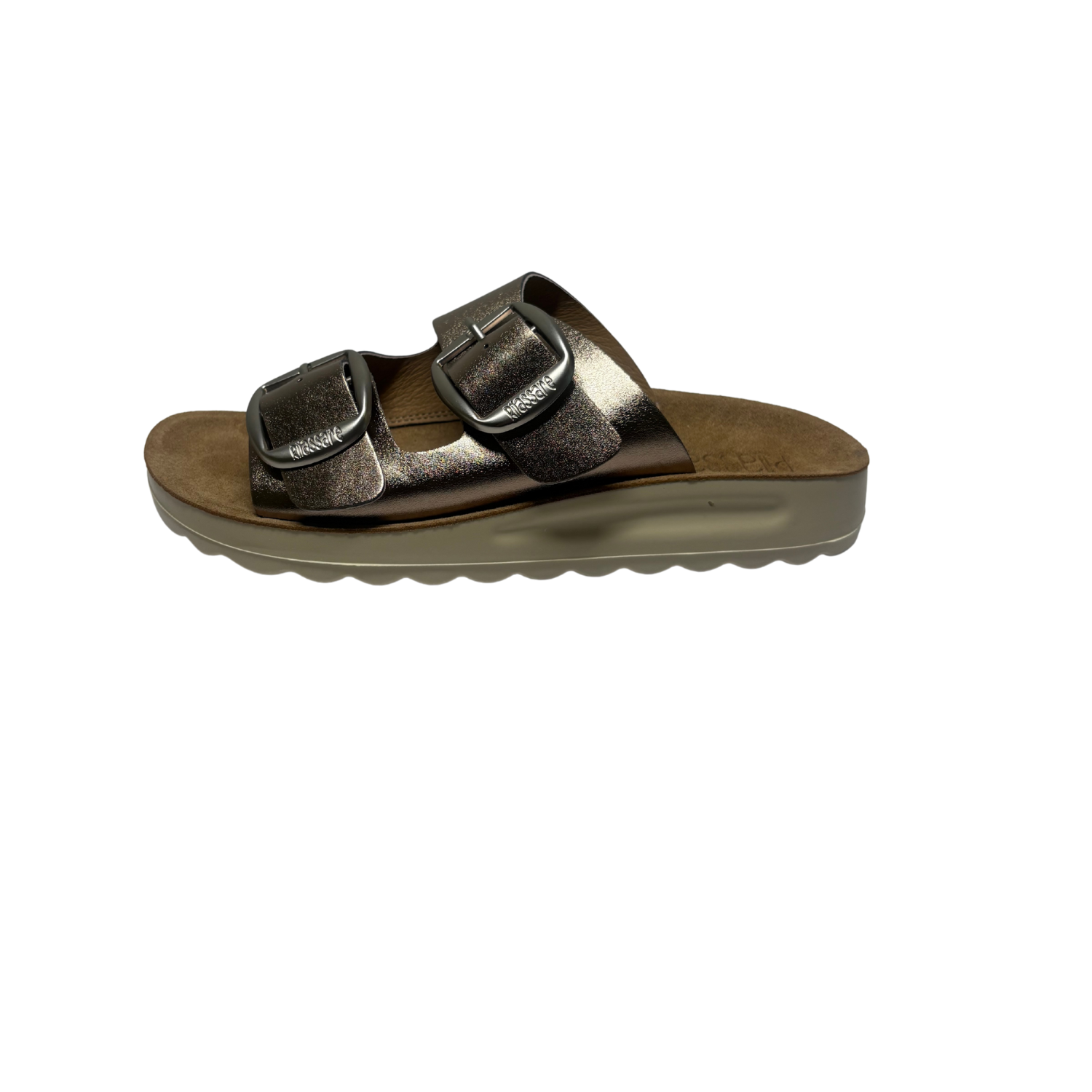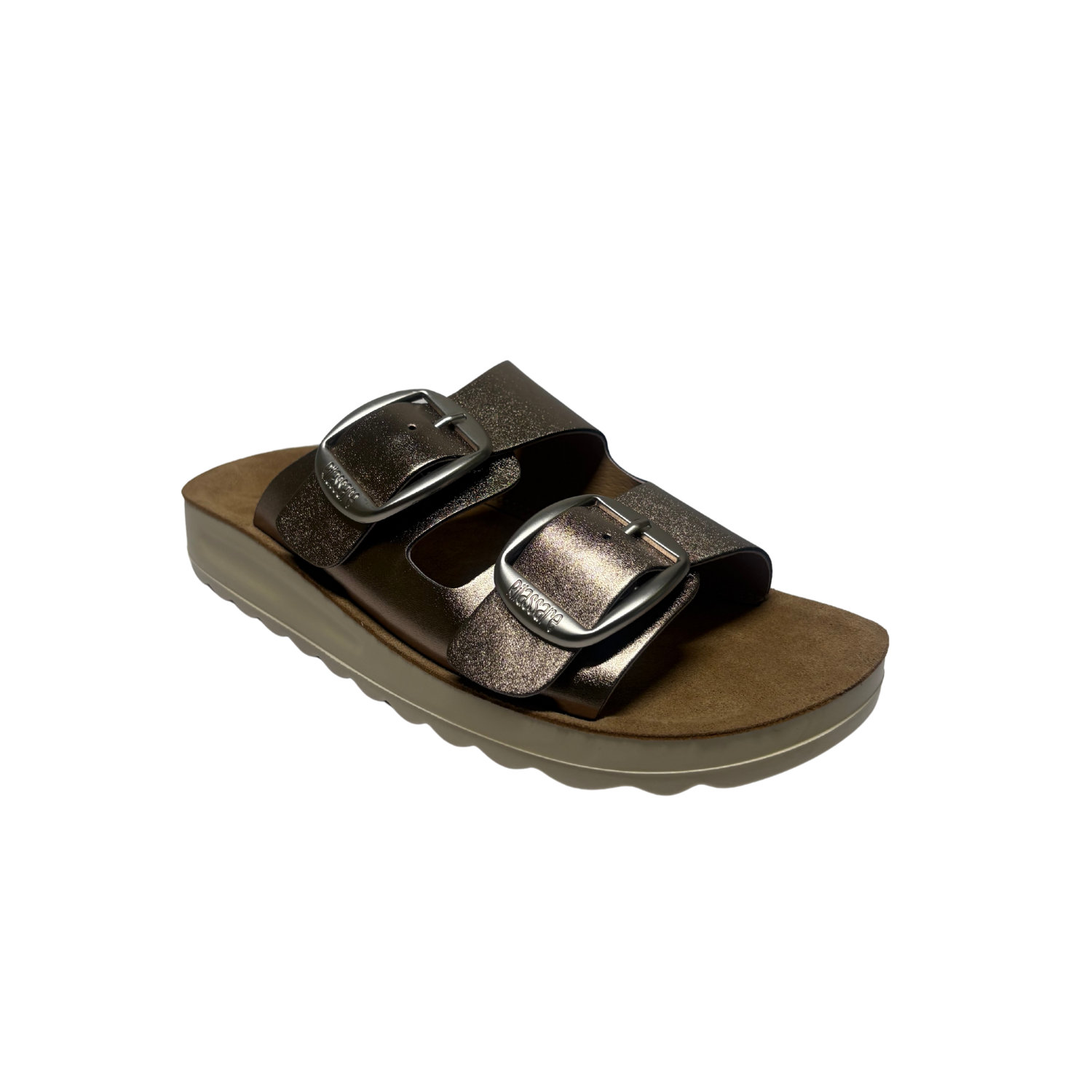 Meet Trippie, the easy, everyday slide with a fresh modern edge. Featuring smooth synthetic straps and statement gold buckles, this style blends simplicity with a touch of glamour. The lightweight cushioned sole keeps you comfortable from morning errands to relaxed weekend wear.