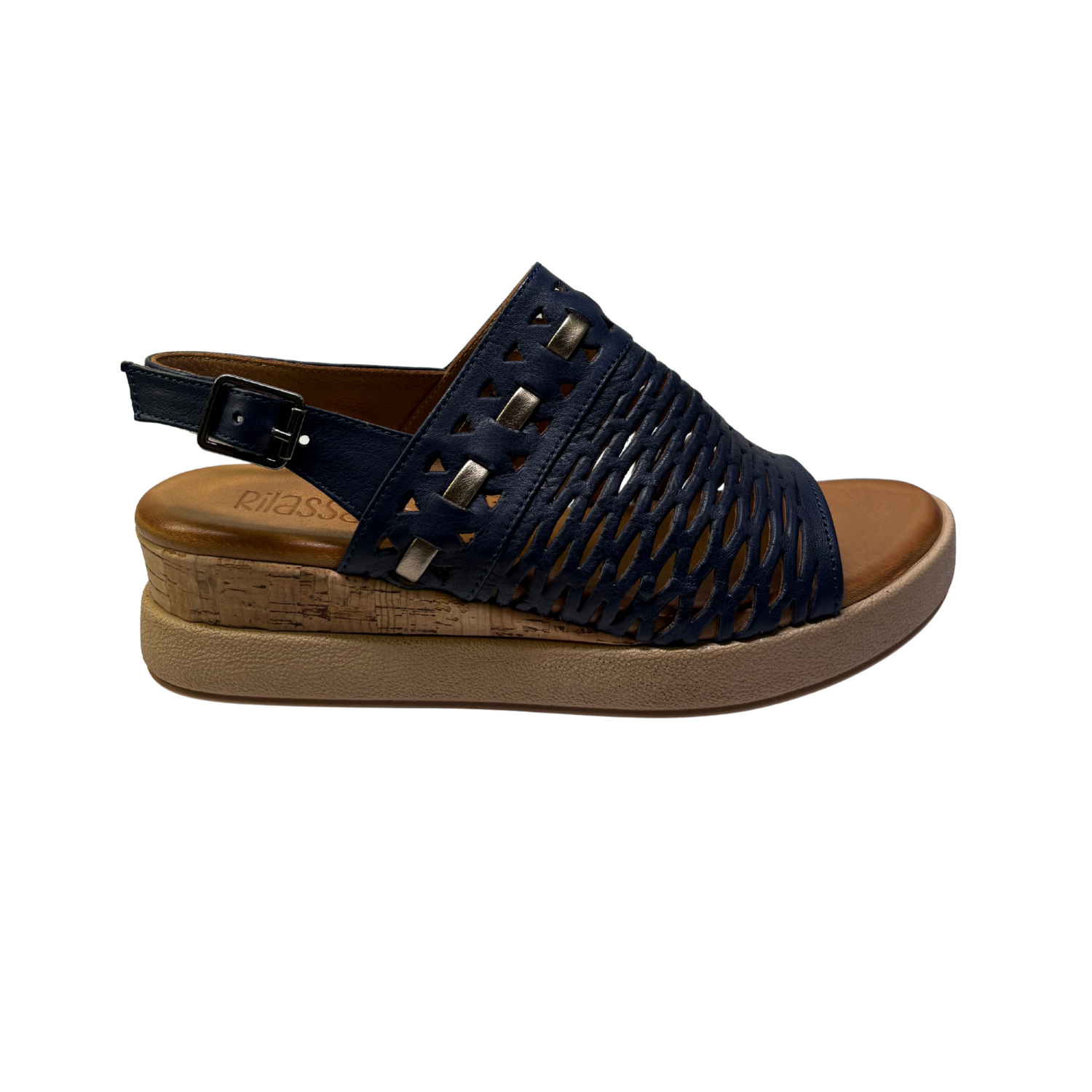TRIPPY by RILASSARE is a flattering European wedge sandal, featuring a soft, laser-cut Turkish leather upper with woven accents and peep-toe design. Offering a generously cushioned leather footbed on a lightweight cork midsole, TRIPPY will see you through from dawn 'til dusk in both style and comfort!