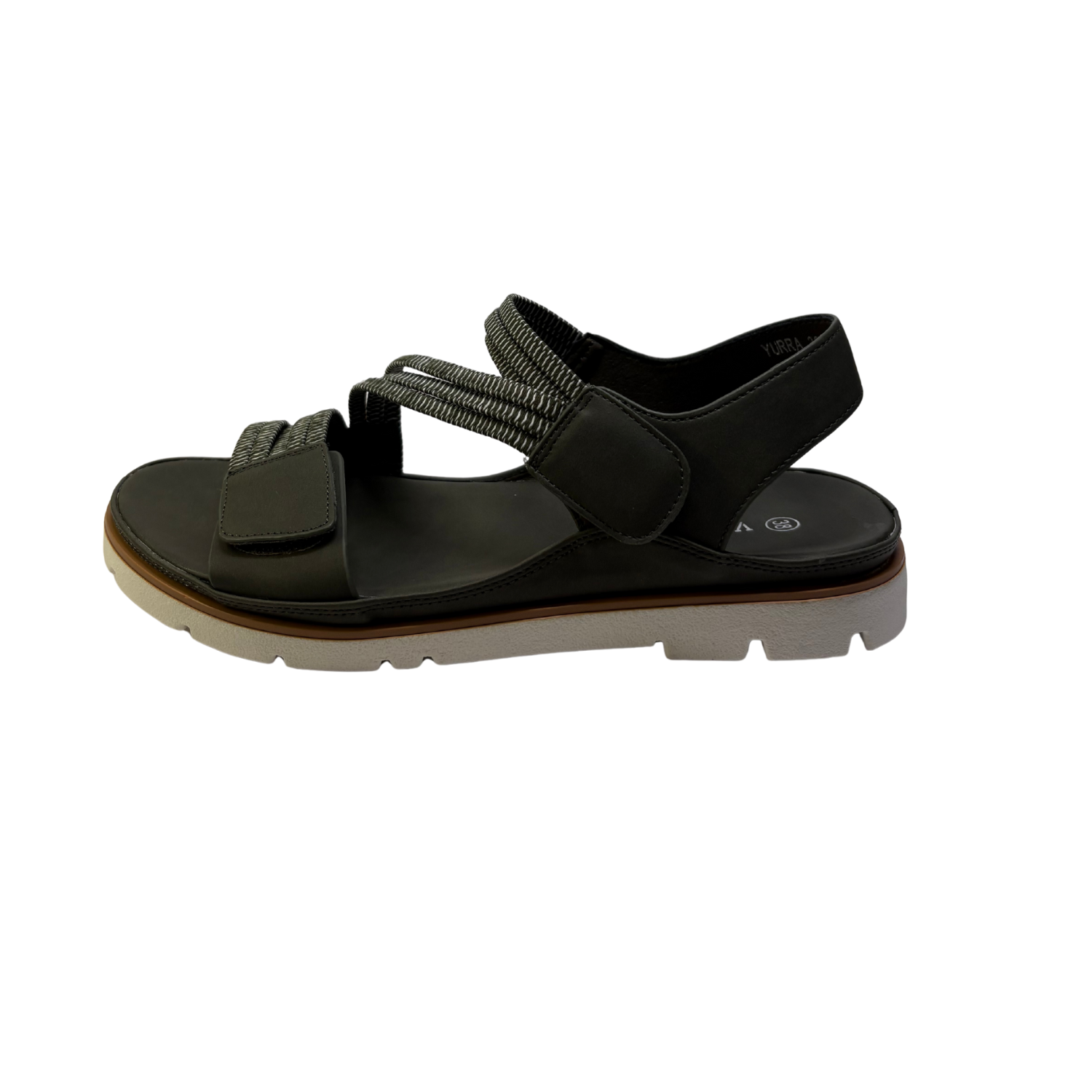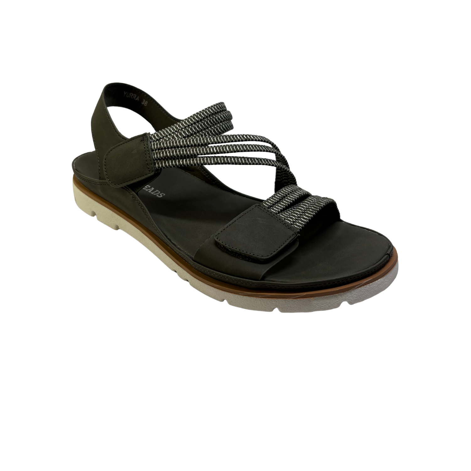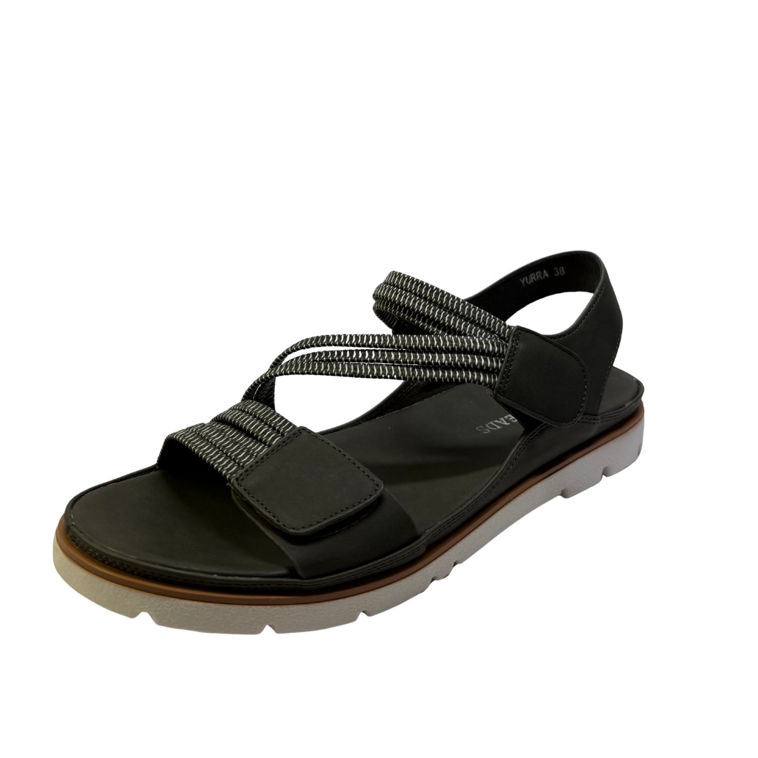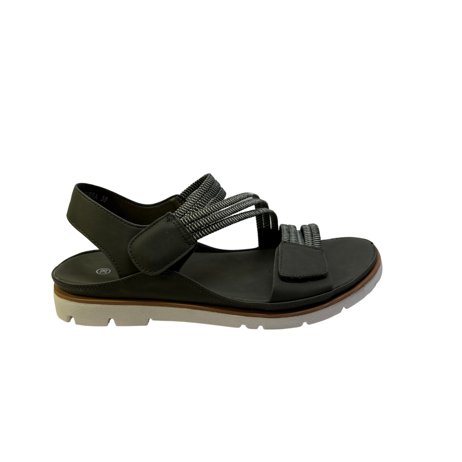 This sandal has a sleek, modern design featuring a Denim upper with adjustable Velcro straps for a secure fit. The straps appear to be made of a durable fabric, with a textured pattern that adds a subtle contrast. The sole is thick and white with deep treads, providing traction and comfort for long walks. The sandal also includes cushioning, ensuring a comfortable experience, while the lightweight construction makes it versatile for both casual and active use. Ideal for warm weather and outdoor activities.